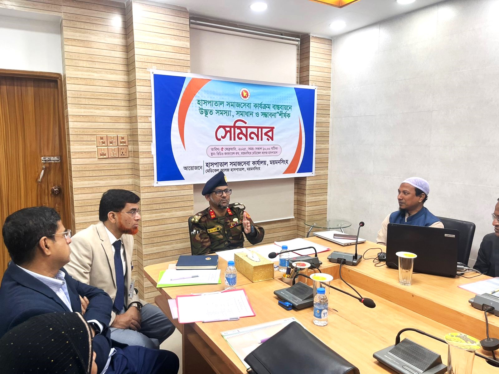 হাসপাতাল সমাজসেবা কর্যক্রম বাস্তবায়নে উদ্ভূত সমস্যা, সমাধান ও সম্ভাবনা” শীর্ষক সেমিনার এ অত্র হাসপাতালের পরিচালক ব্রিগেডিয়ার জেনারেল গোলাম ফেরদৌস মহোদয়, MMCH