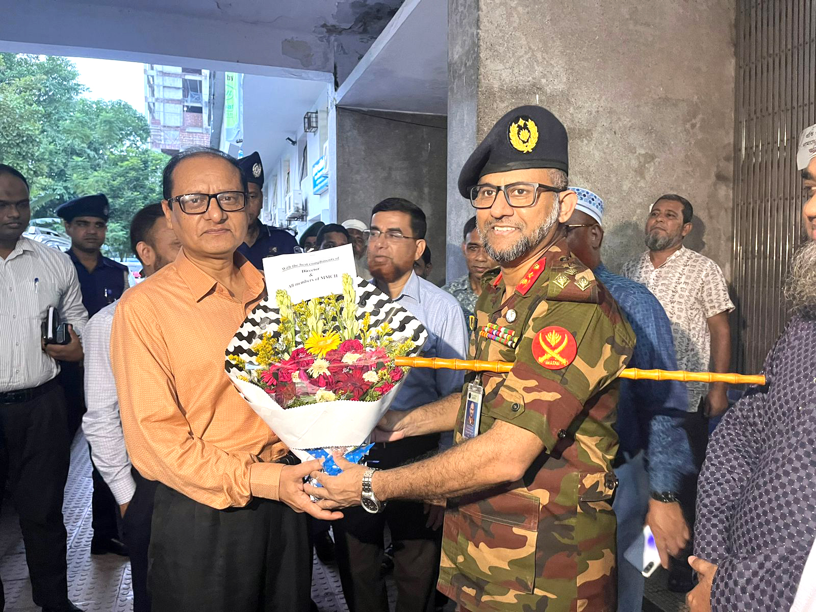 স্বাস্থ্য ও পরিবার কল্যাণ মন্ত্রনালয়, স্বাস্থ্য সেবা বিভাগের সিনিয়র সচিব জনাব এম এ আকমল হোসেন আজাদ মহোদয়কে ফুলেল শুভেচ্ছা ও অভিনন্দন জানান অত্র হাসপাতালের পরিচালক ব্রিগে. জেনা. মোঃ গোলাম ফেরদৌসMMCH