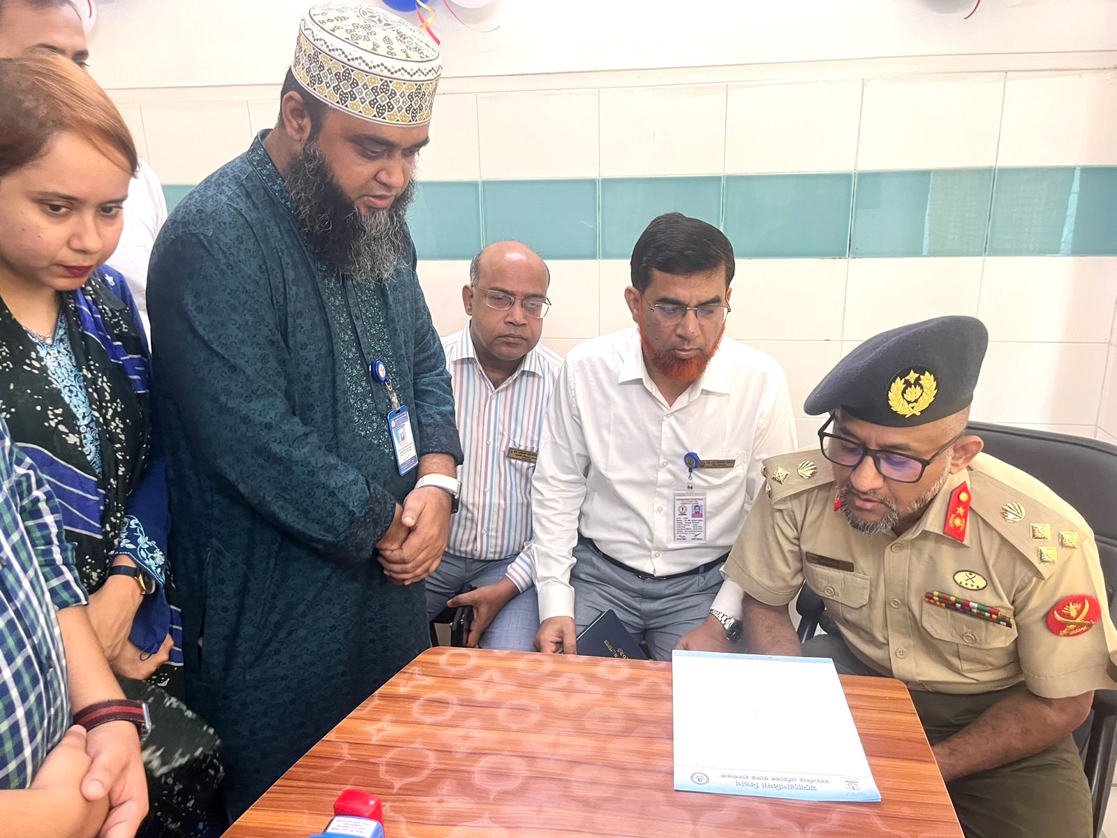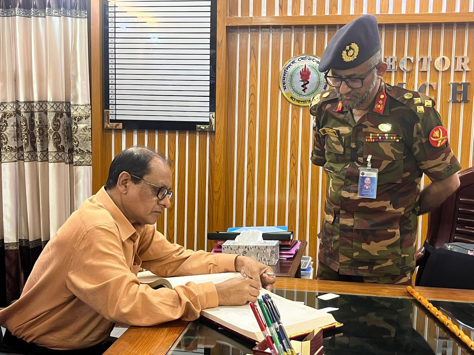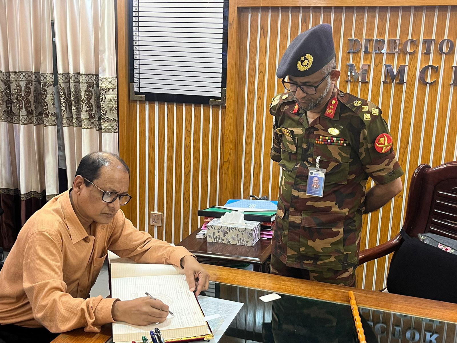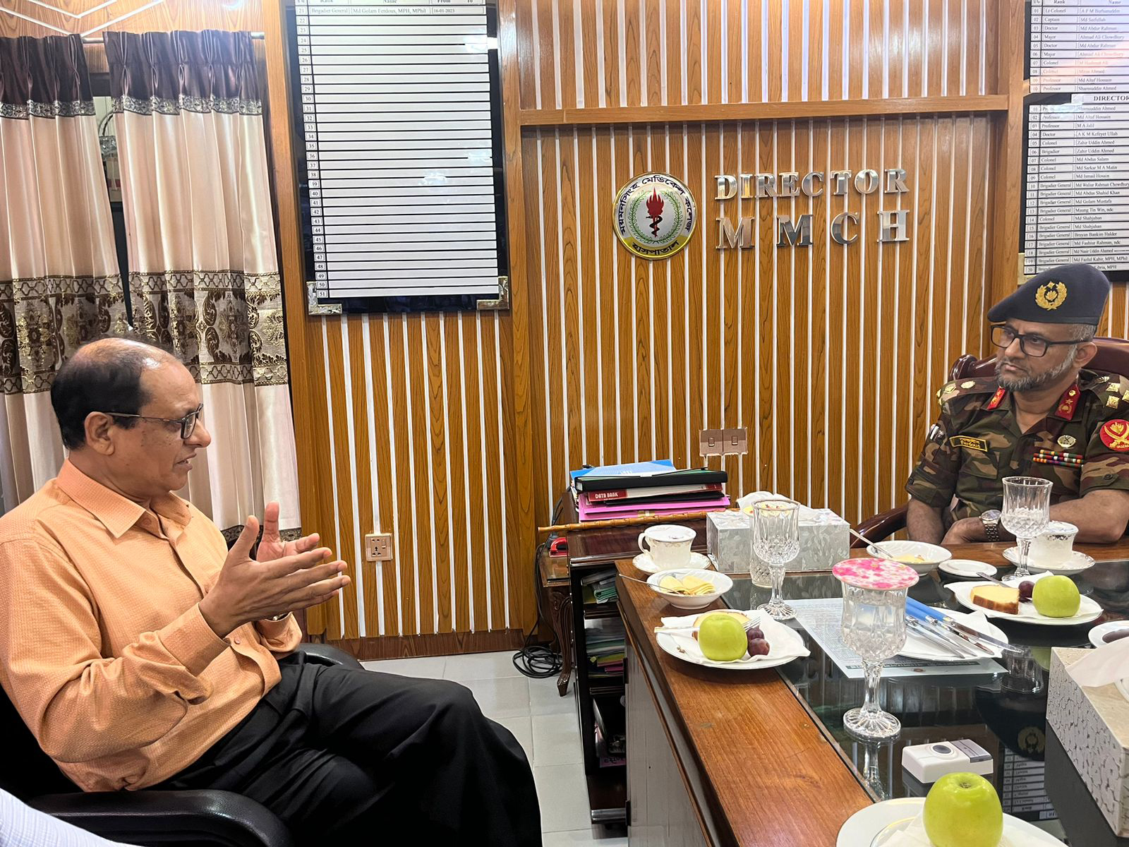 প্রাথমিক ও গণশিক্ষা মাননীয় উপদেষ্টা অধ্যাপক ডাঃ বিধান রঞ্জন রায় পোদ্দার মহোদয় এবং অত্র হাসপাতালের পরিচালক ব্রিগে. জেনা. মোঃ গোলাম ফেরদৌস মহোদয়MMCH