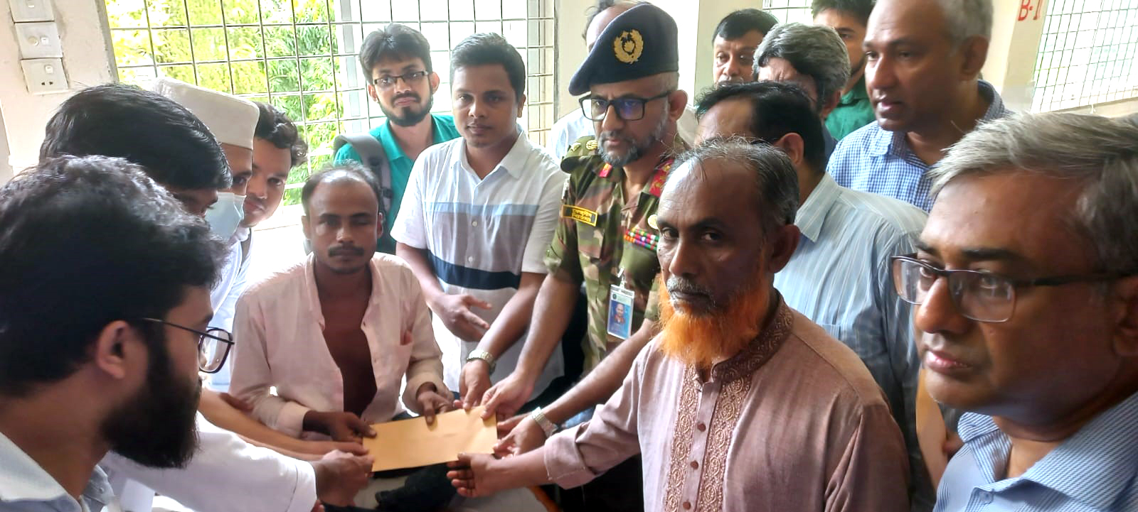 বৈষম্য বিরোধী ছাত্র আন্দোলনে আহতদের চিকিৎসা সেবা প্রদান ও নগদ অর্থ প্রদান করেন অত্র হাসপাতালের পরিচালক ব্রিগে. জেনা. মোঃ গোলাম ফেরদৌস মহোদয়MMCH