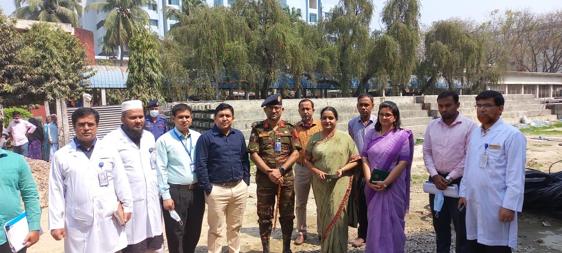 ময়মনসিংহ মেডিকেল কলেজ হাসপাতালে বার্ণ ও প্লাষ্টিক সার্জারীর নতুন ভবন নির্মানের কাজ পরিদর্শন।MMCH