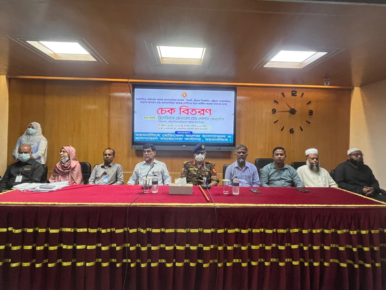 ময়মনসিংহ মেডিকেল কলেজ হাসপাতালের ক্যান্সার, কিডনি, লিভার সিরোসিস, স্ট্রোকে প্যারালাইজড, জন্মগত হৃদরোগ এবং থ্যালাসেমিয়া আক্রান্ত রোগীদের মাঝে আর্থিক সহায়তা প্রদানের লক্ষ্যে চেক বিতরণ করেন অত্র হাসপাতালের পরিচালক ব্রিগেডিয়ার জেনারেল মোঃ গোলাম ফেরদৌস মহোদয়, MMCH